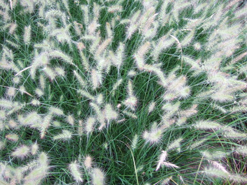 外观:多年生草本,宿根;叶嫩绿色,线形,圆锥花序,形似狼尾状,花絮白色,花期6-10月。植株叶高30-60cm。