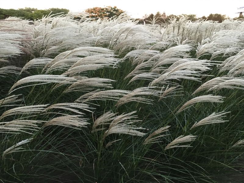 多年生,禾本科,芒属,叶绿色,花絮白色犹如白鹤,非常漂亮,株高1.2米,耐寒,耐旱,耐水湿,适应性强。